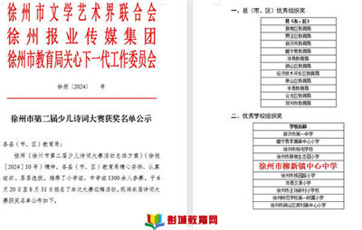 徐州教育:先看紅頭文件:按照《徐州市第二屆少兒詩詞大賽活動(dòng)總體方案》(徐報(bào)〔2024〕10號(hào))精神,由徐州市文學(xué)藝術(shù)界聯(lián)合會(huì)、徐州報(bào)業(yè)傳媒集團(tuán)、徐州市教育局關(guān)心下一代工作委員會(huì)聯(lián)合主辦
