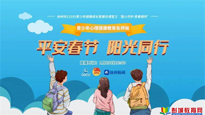 徐州教育:為做好春節(jié)期間全市青少年心理健康宣傳教育服務(wù)工作,共青團(tuán)徐州市委、徐州市教育局、徐州廣電傳媒集團(tuán)聯(lián)合發(fā)起“徐州市12355青少年健康成長直播云課堂之‘童心守護(hù),青春相伴’青