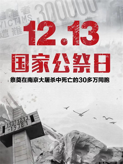徐州教育:今年12月13日“第九個南京大屠殺死難者國家公祭日”?;赝?937年12月13日,是中國歷史上一個極為屈辱和悲痛的日子。侵華日軍攻占南京,對我同胞實施長達40多天滅絕人性的大屠殺,30萬生