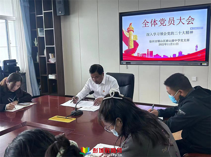 彭城教育:為深入學(xué)習(xí)貫徹黨的二十大精神,激勵(lì)全體師生切實(shí)把思想和行動(dòng)統(tǒng)一到黨的二十大精神上來,嬌山湖中學(xué)支部委員會(huì)于11月11日下午12:50召開全體黨員大會(huì),深入學(xué)習(xí)黨的二十大精神