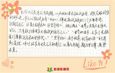 教育熱點:有人說:“生活是一種挑戰(zhàn)?!闭\然,每個人的人生之路,都布滿荊棘。面對困難,有人選擇奮力搏擊,有人選擇退縮不前。如何以必勝的姿態(tài)挑戰(zhàn)自我?曰:“昂首敬勇氣,與挑戰(zhàn)偕行。
