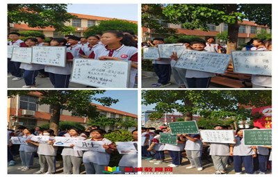 徐州教育:為了給即將參加生地會考的八年級同學們加油鼓勁,學校發(fā)起了七年級“學弟學妹送祝福,助力中考第一戰(zhàn)”的活動,校園里擺放了各班準備的祝福語,6月17日,利用早讀課七年級同學喊樓