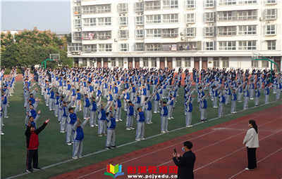 彭城教育:2021年10月26日大許鎮(zhèn)中心中學為迎接區(qū)三操比賽,全體師生來到操場練習廣播操、特色沙瓶操。天氣晴朗,一朵朵白云飄在天空上,秋天的陽光灑滿校園,同學們穿著校服,排著整齊的隊伍