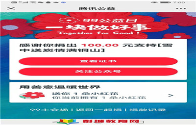 徐州教育:樂善好施、扶危濟(jì)困是中華民族的傳統(tǒng)美德,相互幫助、患難扶持是社會倡導(dǎo)的時代新風(fēng)。決戰(zhàn)脫貧攻堅,助力疫情防控,單集鎮(zhèn)中心中學(xué)積極響應(yīng)銅山區(qū)慈善工作部署,通過微信捐款平臺