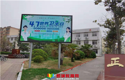 教育熱點:2021年4月7日,是第72個世界衛(wèi)生日?;顒又黝}是:建設(shè)一個更公平、更健康的世界。為了普及衛(wèi)生知識,保障學(xué)生身體健康成長,鄭集鎮(zhèn)中心中學(xué)充分利用校園LED液晶顯示屏進行衛(wèi)生日宣傳