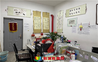 彭城教育:從南面樓梯走上初二教學樓,最先看到的就是我們的辦公室。門口擺滿了綠植和盆栽,這是愛花的梁杰老師、孫禮梅老師和張秀娟老師的作品。走進來,四面墻壁上掛滿了學生的繪畫和書法