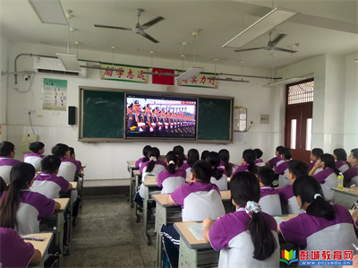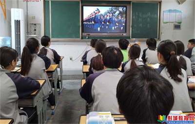 觀閱兵直播 建強國之夢:塔山中學(xué)組織全校師生觀看閱兵盛典
