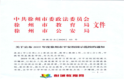徐州一中榮獲“市平安校園示范?!狈Q號