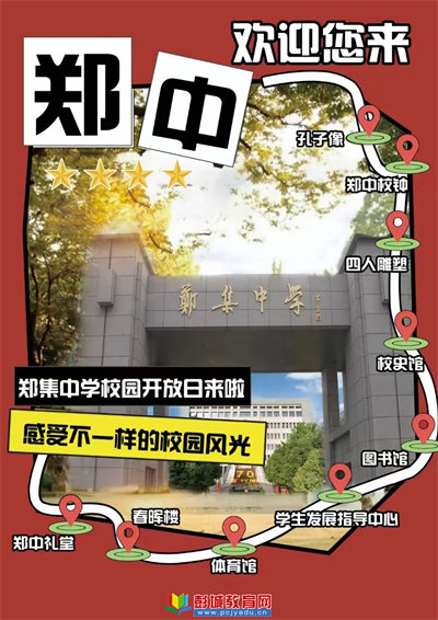 教育熱點(diǎn):聽說你想進(jìn)鄭中根據(jù)銅山區(qū)教育局統(tǒng)一安排校園開放日來啦!開放時間:2024年5月4日活動安排:1.入校時間9:00-11:30(誠信樓前簽到領(lǐng)取材料袋)2.集中宣講11:00-11:40(鄭中禮堂)3.參觀校園9:00