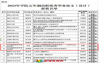 教育熱點:2023年11月7日,江蘇聯(lián)合職業(yè)技術(shù)學院發(fā)布《關(guān)于公布2023年度學院五年制高職優(yōu)秀畢業(yè)論文(設計)獲獎名單的通知》(蘇聯(lián)院教〔2023〕41號),經(jīng)各辦學單位遴選推薦、學院組織專家評審