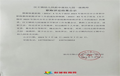 漢王鎮(zhèn)幼兒園2023年擬申報(bào)幼兒園一級(jí)教師職稱評(píng)定結(jié)果公示