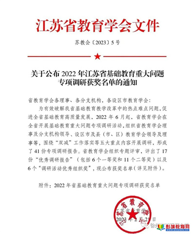 鼓樓· 喜報|徐州市鼓樓小學(xué)丁萬河分校黃璐副主任在基礎(chǔ)教育重大問題調(diào)研報告評選活動中喜獲省一等獎