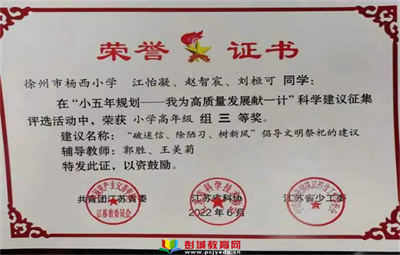 徐州教育:近日,由江蘇省少年兒童研究會、少年科學(xué)觀建設(shè)與發(fā)展專業(yè)委員會對全省少年科學(xué)院會員單位工作進行年度綜合考評,徐州市楊西小學(xué)希望少年科學(xué)院(編號20220403)獲得2022年度工作考評