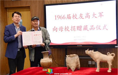 教育熱點(diǎn):近日,徐州一中1966屆校友高大軍將個人收藏多年的“鬲”、“四不像陶器”、“陶釉耳瓶”三件珍貴歷史文物無償捐贈給母校徐州一中,用于學(xué)校歷史教學(xué)。徐州一中副校長魏全星代表學(xué)校