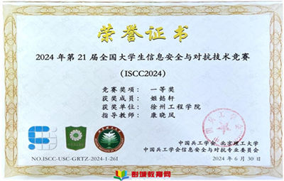 徐州教育:近日,由北京理工大學(xué)主辦的2024年第21屆信息安全與對抗技術(shù)競賽(ISCC2024)獲獎名單正式公布,我校學(xué)子在本次大賽中表現(xiàn)優(yōu)異,在個人挑戰(zhàn)賽(大學(xué)生賽區(qū))中姬懿軒同學(xué)榮獲國家一等