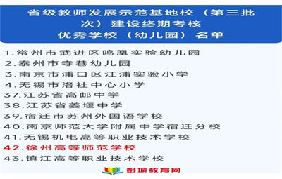 熱烈祝賀徐州高等師范學(xué)校獲評省級教師發(fā)展示范基地校(第三批次)建設(shè)終期考核優(yōu)秀學(xué)校
