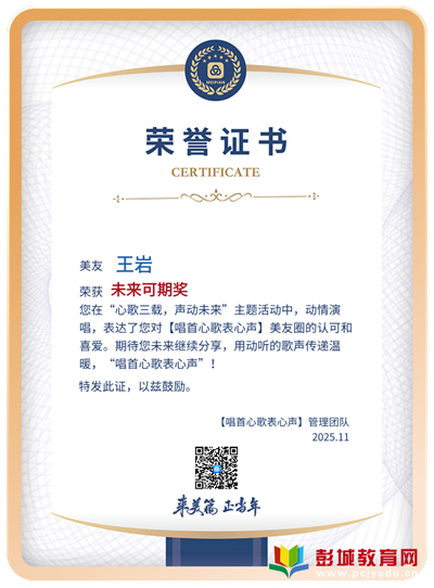 彭城教育:日前,在全國《美篇之家》“唱首心歌表心聲”管理團(tuán)隊(duì)組織的“心歌三載,聲動(dòng)未來”主題活動(dòng)中,山東省青島市《美篇》之友王巖創(chuàng)作的《垃圾分類組歌》被評為“未來可期”獎(jiǎng),主辦