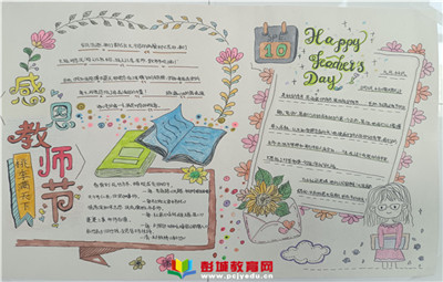 教育熱點(diǎn):金秋送爽,景色宜人,在這個(gè)丹桂飄香的季節(jié)里,我們迎來了全國(guó)第37個(gè)教師節(jié)。為在全校師生中營(yíng)造濃厚的尊師重教氛圍,徐州市高新區(qū)中學(xué)開展了以“感恩教師”為主題的手抄報(bào)評(píng)比活